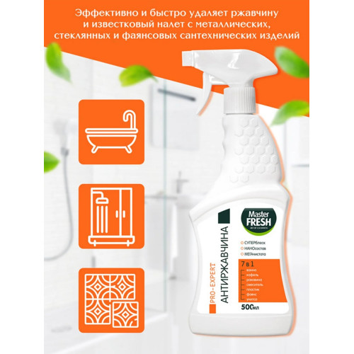 Доверьте чистоту вашей ванной комнаты профессиональному средству Master Fresh Pro-Expert — и забудьте о трудновыводимых загрязнениях!