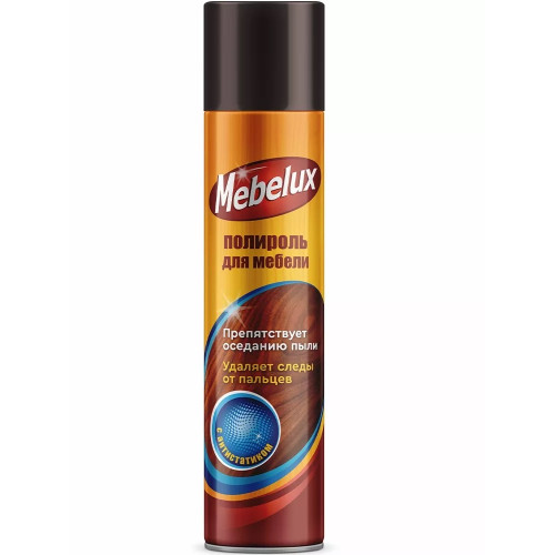 Полироль для мебели Mebelux с антистатиком предотвращает оседание пыли и грязи на очищаемой поверхности.