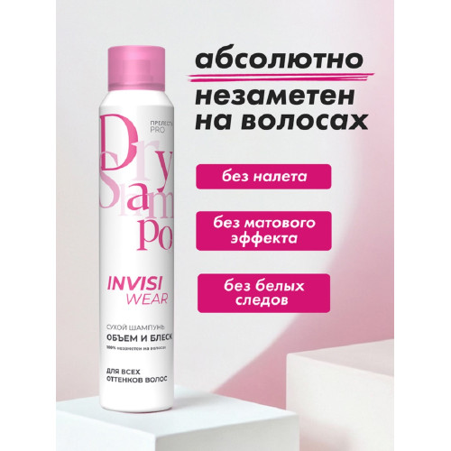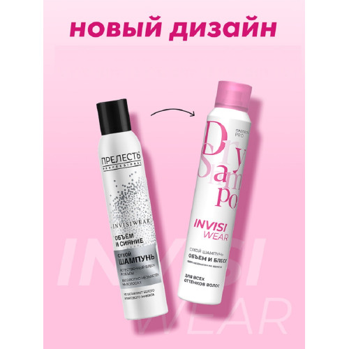 Сухой шампунь для волос Прелесть Professional Invisiwear объем и блеск, 200 мл