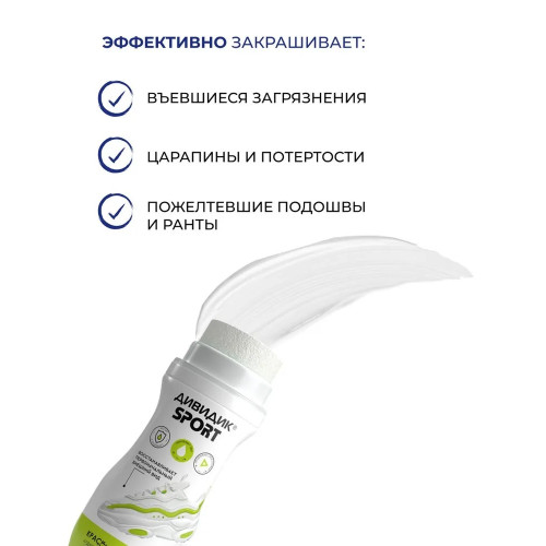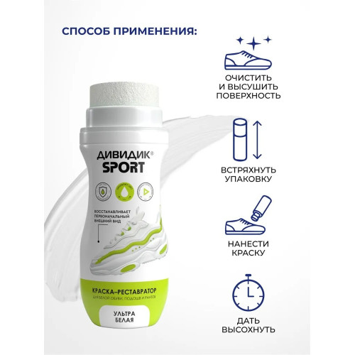 Краска-реставратор Дивидик Спорт, для белой обуви, ультра белая, 75 мл; Купить в Волгограде, купить в Москве