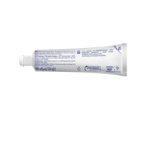 Текстура: фиолетовый гель с синими пластинками. Пластинки растворяются во время чистки зубов.