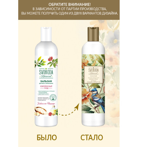 Бальзам-ополаскиватель для всех типов волос Svoboda Natural Комплексный уход 430 мл; Купить в Волгограде, Купить в Москве
