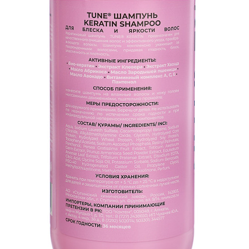 Шампунь Tune Professional Keratin Ламинирующий, для поврежденных волос, с дозатором, 500 мл; Купить в Волгограде, купить в Москве