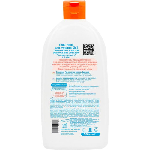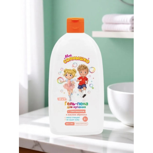 Гель-пена 2в1 для купания Моё Солнышко, с пантенолом и маслом абрикоса, для детей 3+, 500 мл