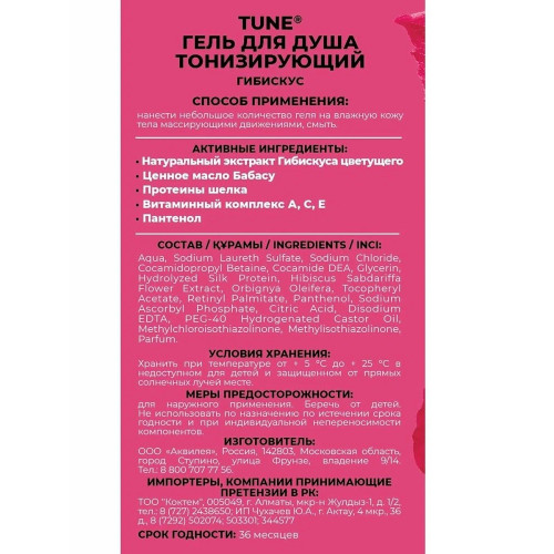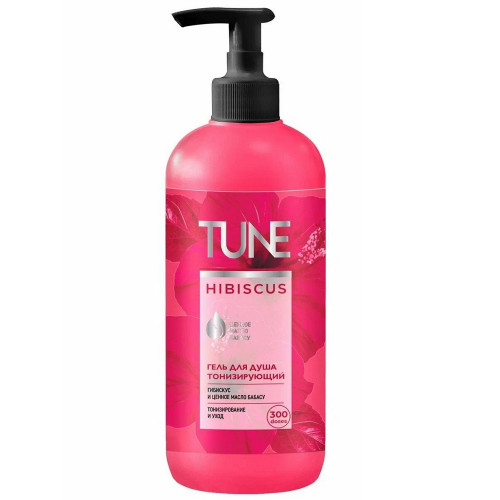 Гель для душа Tune Тонизирующий, гибискус и ценное масло бабасу, 500 мл, с дозатором; Купить в Волгограде, купить в Москве