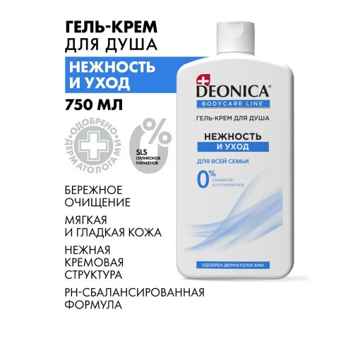 Гель-крем для душа Deonica Нежность и уход, женский, парфюмированный, 750 мл
