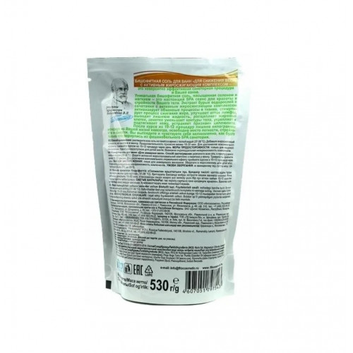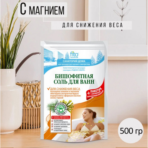 Соль для ванн Бишофитная Fito Косметик Для снижения веса, насыщенная селеном и магнием – это настоящий SPA сеанс для красоты и стройности Вашего тела. Экстракт бурых водорослей в сочетании с активным жиросжигающим комплексом активизирует обменные процессы в тканях, стимулирует процесс сжигания жира, улучшает отток лимфы, выводит лишнюю жидкость, расщепляет жировые клетки, заметно уменьшает контуры тела, укрепляет и подтягивает кожу, устраняет признаки целлюлита.
