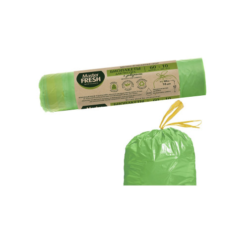 Пакеты для мусора Master Fresh Био с завязками 60л, биоразлагаемые, 10шт