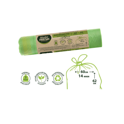 Пакеты для мусора Master Fresh Био с завязками 60л, биоразлагаемые, 10шт; Купить в Волгограде, купить в Москве