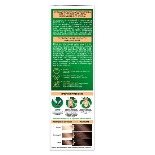 Холодный пепельно-русый подчеркнет вашу подарит вам максимум естественности! Великолепный натуральный цвет надолго! Biocolor - стойкая крем-краска для волос на основе биомасел, которая глубоко питает и обеспечивает естественный и натуральный цвет со стойким покрытием седины.