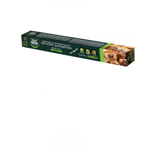 Пергамент для выпечки Master FRESH европейского производства с двухсторонним силиконизированным покрытием, благодаря этому покрытию пергамент является водо- и жиронепроницаемым и идеально подходит для выпечки в духовке, для приготовления блюд в микроволновых печах, а также для хранения и замораживания продуктов. Выпечка не пригорает и равномерно пропекается даже при высоких температурах (до 230°C), что избавляет от чистки рабочих поверхностей. Пергамент помогает приготовить качественную выпечку и сохранить настоящий вкус продуктов! Рулон шириной 38 см – оптимальная ширина для современной духовки! Дополнительные советы: удобно готовить дома роллы, удобно заворачивать в пергамент продукты для хранения в холодильнике, удобно использовать в хлебницах. Пергамент Master FRESH упакован в индивидуальную картонную многоразовую коробочку, что очень удобно при хранении, так как пергамент не разматывается при использовании в ящике.