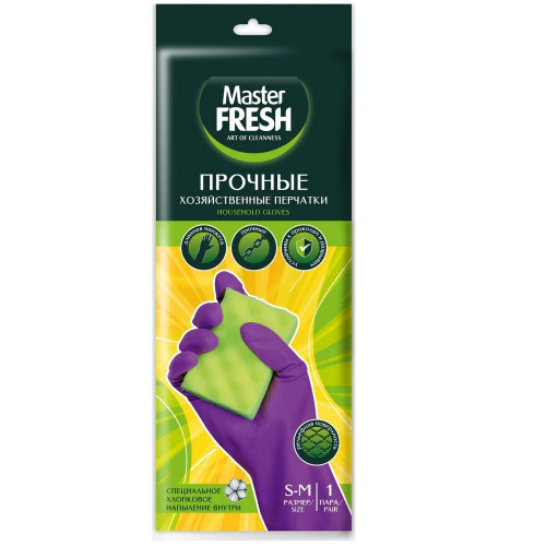 Хозяйственные перчатки Master Fresh, латексные, с хлопком, размер S - M, 1 пара; Купить в Волгограде, купить в Москве