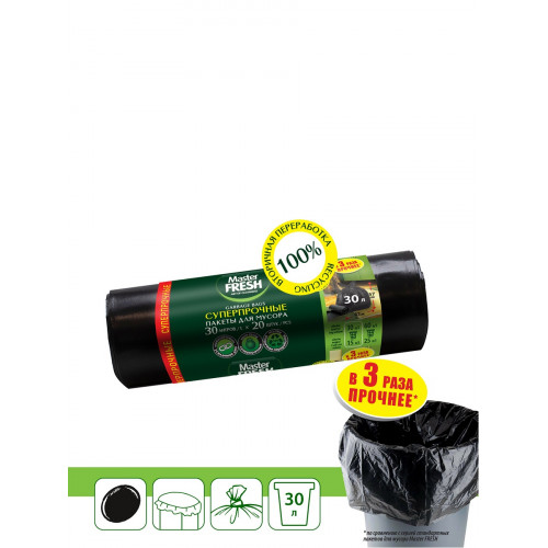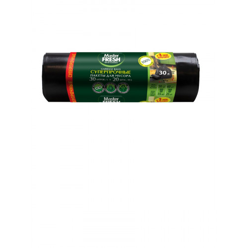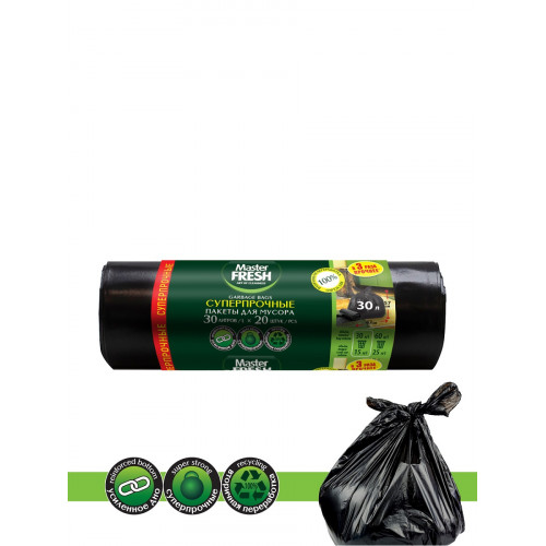 Пакеты для мусора Master FRESH Суперпрочные, черные, 20 мкм, 30 литров 20 штук