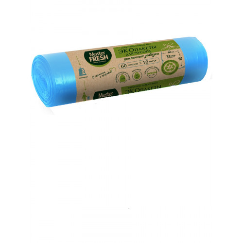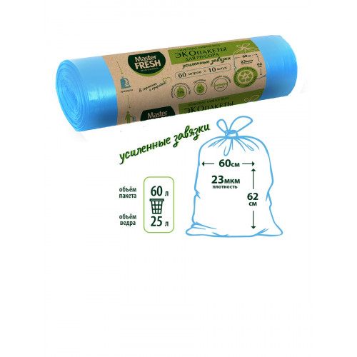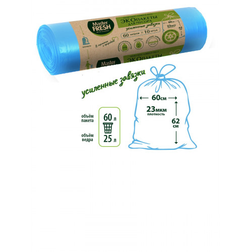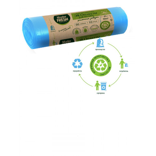 Пакеты для мусора Master FRESH Эко, с прочными завязками, RECYCLING, голубые, 23 мкм, 60 литров 10 штук; Купить в Волгограде, купить в Москве