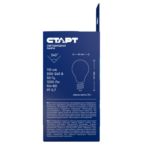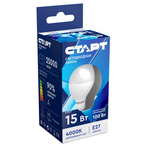 Лампа светодиодная Старт, E27, 15 Вт, 4000 К, 1200 Лм, нейтральный свет; Купить в Волгограде, купить в Москве