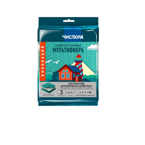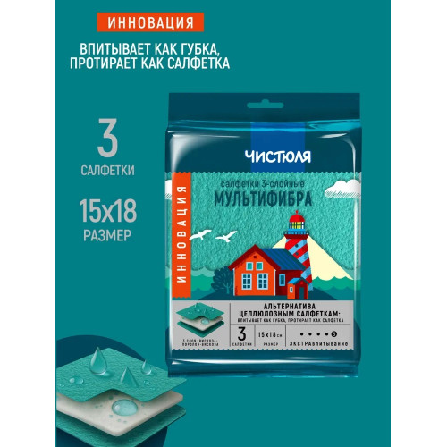 Салфетки Чистюля 3-слойные экстравпитывающие мультифибра 3 шт; Купить в Волгограде, купить в Москве