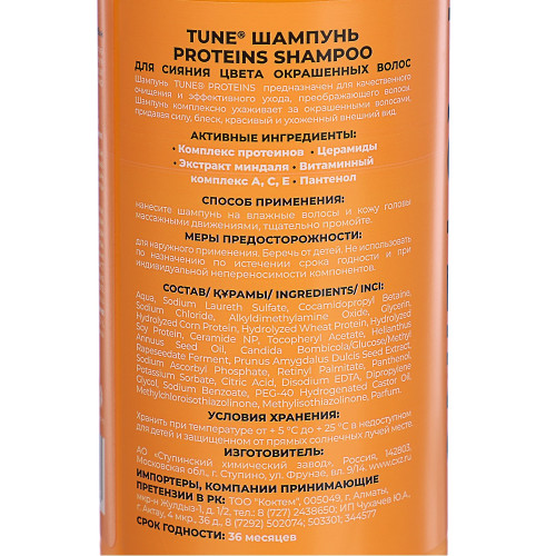 Шампунь Tune Professional Proteins Восстанавливающий, для окрашенных волос, с дозатором, 500 мл; Купить в Волгограде, купить в Москве