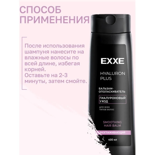 Гиалуроновый бальзам-ополаскиватель EXXE — это настоящее спасение для сухих и поврежденных волос, созданное на основе инновационной формулы с гиалуроновой кислотой. Благодаря уникальному составу средство обеспечивает комплексный уход за волосами, возвращая им природную красоту и здоровье.