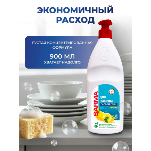 Sarma «Лимон» — это надежная бытовая химия, которая дарит безупречную чистоту и свежесть каждый день. Идеальный выбор для посуды и любых моющихся поверхностей.