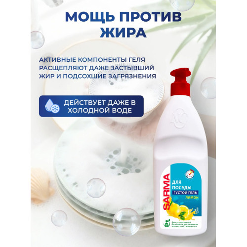 Гель для мытья посуды Sarma «Лимон» — это эффективное моющее средство, которое объединяет в себе силу природной свежести и современные технологии. Благодаря густой формуле и обильной пене, оно идеально подходит для ежедневного использования на кухне.