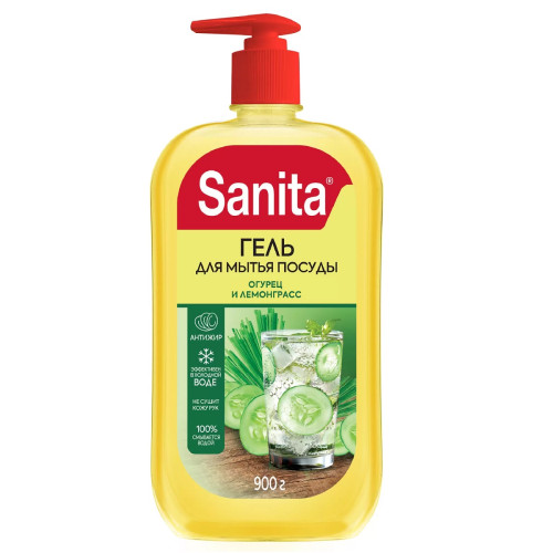 Гель для мытья посуды Sanita Огурец и лемонграсс, 900 г; Купить в Волгограде, купить в Москве
