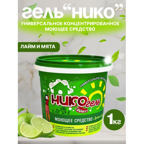 Моющее средство Нико гель Лайм и мята, универсальное, концентрированное, 1 л; Купить в Волгограде, купить в Москве