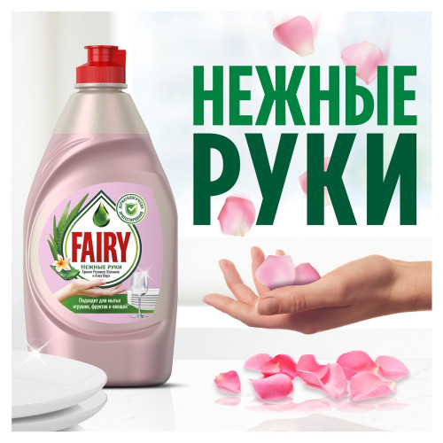 Средство для мытья посуды Fairy Нежные руки, розовый жасмин и алоэ вера, 650 мл; Купить в Волгограде, купить в Москве