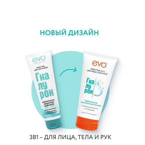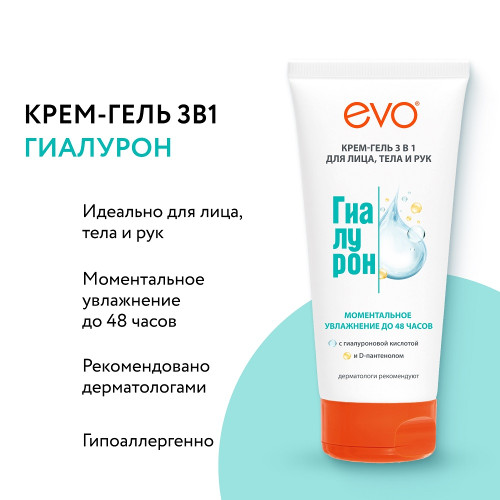 • Крем-гель 3в1 EVO Гиалурон - для моментального увлажнения и восстановления кожи c гиалуроновой кислотой и D-пантенолом.
