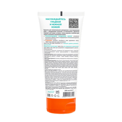 Крем-гель 3в1 Эво Гиалурон Моментальное увлажнение, для лица, тела и рук, 200 мл; Купить в Волгограде, купить в Москве
